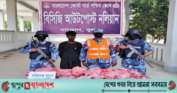 তিনি বলেন, গোপন সংবাদের ভিত্তিতে আজ ০৮ মার্চ ২০২৫ তারিখ মঙ্গলবার সকাল ১০ টায় কোস্ট গার্ড আউটপোস্ট নলিয়ান কর্তৃক সুন্দরবন সংলগ্ন নলিয়ান ঠাকুরবাড়ি ঘাট সংলগ্ন এলাকায় একটি বিশেষ অভিযান পরিচালনা করা হয়। অভিযানে সুন্দরবনের কুখ্যাত ডাকাত করিম শরীফের অন্যতম সহযোগী মোঃ শাহজাহান, মোঃ অনু এবং একজন অজ্ঞাত ব্যক্তি কোস্ট গার্ড সদস্যদের উপস্থিতি টের পেয়ে হরিণের মাংস সহ ০২ টি বোট রেখে পালিয়ে যায়। পরবর্তীতে বোট দুটি তল্লাশি করে ১১০ কেজি হরিণের মাংস উদ্ধার করা হয় এবং ঘটনাস্থল থেকে একজন হরিণ শিকারীকে আটক করা হয়।