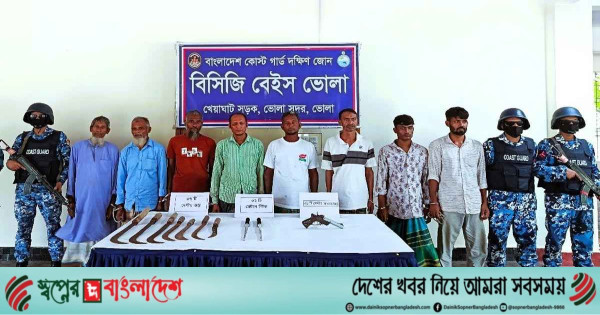 ভোলায় একটি আগ্নেয়াস্ত্র ও বিপুল পরিমাণ দেশীয় অস্ত্রসহ ৮ ডাকাতকে আটক করেছে কোস্টগার্ড দক্ষিণ জোন। রোববার (২৭ জুলাই) কোস্টগার্ডের মিডিয়া কর্মকর্তা লেফটেন্যান্ট কমান্ডার সিয়াম-উল-হকের পাঠানো এক সংবাদ বিজ্ঞপ্তিতে এ তথ্য নিশ্চিত করা হয়।