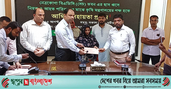 নেত্রকোনায় বিএডিসির পুরাতন ভবনের ছাদ চাপায় নিহত ৩ শ্রমিক এনং আহত ৩ পরিবারের মাঝে (শুক্রবার)দুপুর সাড়ে ১১ টায় জেলা প্রশাসকের সম্মেলন কক্ষে নগদ অর্থ প্রদান করা হয়েছে। নিহত পরিবারের মাঝে ৫০ হাজার ও আহতদের মাঝে ২৫ হাজার নগদ টাকা তুলে দেয়া হয়।