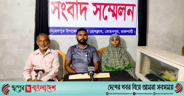 সংবাদ সম্মেলনে ভুক্তভুগী পরিবার জানান, রাজশাহীর দূর্গাপুর উপজেলার সূর্য্যভাগ গ্রামের আমজাদ আলীর মেয়ে আশুরা খাতুন (২৬) অর্থের লোভে একই গ্রামের ওমর আলীর ছেলে ফারুক হোসেনের বাড়িতে গত ১৬ আগস্ট বিয়ের দাবীতে অনশনের নাটক শুরু করে। এই মেয়ের মাধ্যমে অর্থের জন্য এলাকার কিছু দুষ্কৃতিকারীরা যোগ দিয়ে হুমকি প্রদান করছে ভুক্তভোগী পরিবারকে। পরে ছেলের মা বিমলা বিবি দূর্গাপুর থানায় গেলে নারী সিন্ডিকেটের লোকজনের বাঁধায় থানায় ঢুকতে না পেরে ফিরে আসেন। বর্তমানে আইনগত সেবা না পাওয়ায় ভুক্তভোগী পরিবারটি নিরাপত্তাহীনতায় ভুগছে। এঘটনার পর থেকে ভুক্তভোগী ফারুক হোসেনকে আর তার পরিবার খুজে পাচ্ছেনা। তাই নিরুপায় হয়ে জেলার মোহনপুর উপজেলায় গিয়ে সংবাদ সম্মেলন করেন ছেলের বাবা-মা ও ভগ্নিপতি।