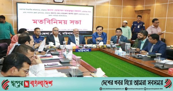 বরিশালের নতুন বিভাগীয় কমিশনার মোহাম্মদ মাহফুজুর রহমান ও জেলা প্রশাসক (ডিসি) খায়রুল আলম সুমনের সঙ্গে জেলা পর্যায়ের কর্মকর্তাদের মতবিনিময় সভা অনুষ্ঠিত হয়েছে। বুধবার সকাল ১১টায় জেলা প্রশাসনের আয়োজনে জেলা প্রশাসকের কার্যালয়ের সম্মেলন কক্ষে এ মতবিনিময় সভা অনুষ্ঠিত হয়।