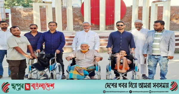 বিএনপির কেন্দ্রীয় কমিটির প্রচার সম্পাদক সুলতান সালাউদ্দিন টুকুর উদ্যোগে আজ বুধবার বিকেলে টাঙ্গাইল শহরের শহীদ মিনার প্রাঙ্গণে ৩ জন শিশু ও বৃদ্ধার মধ্যে এ হুইলচেয়ার পৌঁছে দেন, জেলা বিএনপি'র সাবেক সদস্য সচিব মাহমুদুল হক সানু।