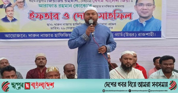 বৃহস্পতিবার (২৬ ফেব্রুয়ারি) রাজশাহী মহানগরের ১৯ নম্বর ওয়ার্ডের দারুন নাজাত হাফিজিয়া কওমিয়া মাদ্রাসা প্রাঙ্গণে আয়োজিত এক ইফতার ও দোয়া মাহফিলে প্রধান অতিথির বক্তব্যে তিনি এসব কথা বলেন।
