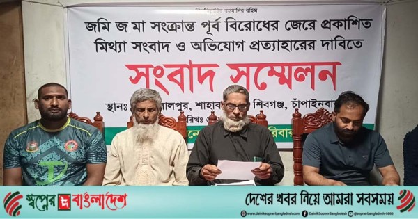 চাঁপাইনবাবগঞ্জের শিবগঞ্জ উপজেলার শাহবাজপুর ইউনিয়নের পারদিলালপুর গ্রামে পৈতৃক জমি সংক্রান্ত বিরোধের জেরে হামলা, ভাঙচুর ও লুটপাটের অভিযোগকে ভিত্তিহীন ও উদ্দেশ্যপ্রণোদিত দাবি করে সংবাদ সম্মেলন করেছেন অভিযুক্ত পক্ষ।