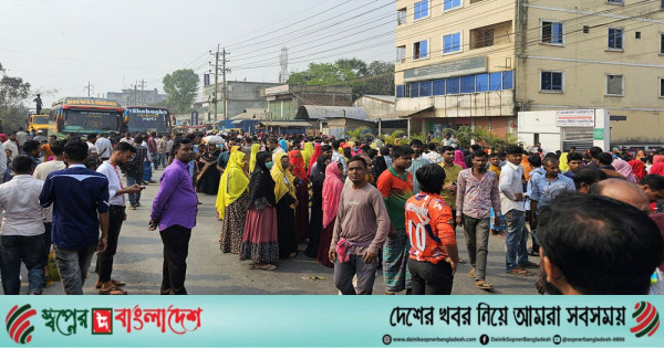 গাজীপুরে ট্রাকচাপায় নারী শ্রমিকের মৃত্যুর প্রতিবাদে ঢাকা-ময়মনসিংহ মহাসড়ক অবরোধ করেছেন পোশাক শ্রমিকরা। আজ বুধবার সকাল ৮টা থেকে সদর উপজেলার বাঘের বাজার গোল্ডেন রিফিট গার্মেন্টস লিমিটেডের শ্রমিকরা এই আন্দোলন শুরু করেন।