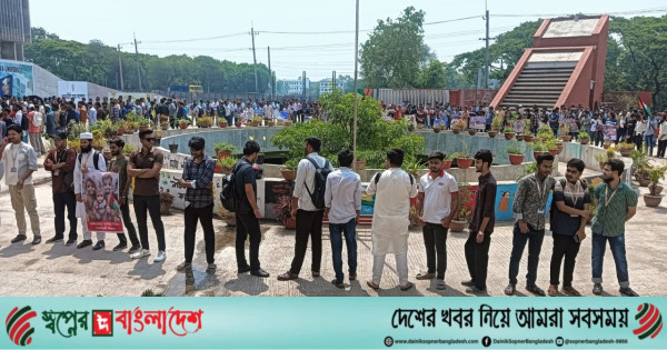 সোমবার (৭ মার্চ) সকাল থেকে নগরজুড়ে বিভিন্ন শিক্ষা প্রতিষ্ঠান ও সাধারণ মানুষের অংশগ্রহনে এ কর্মসূচী পালন করা হয়। বিক্ষোভ শেষে ফিলিস্তিনিদের জন্য দোয়ার আয়োজন করা হয়।