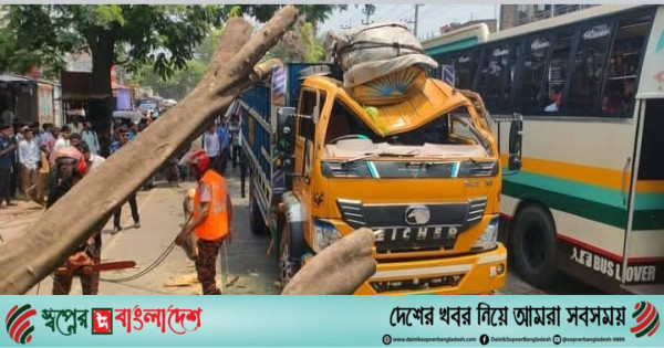 জানা গেছে, যশোর-বেনাপোল মহাসড়কের শার্শা উপজেলার নাভারন বাজারের বুরুজবাগান মাধ্যমিক বিদ্যালয়ের প্রধান গেটের সামনে রাস্তার পাশে একটি কৃষ্ণচুড়া গাছের বড় ডাল হঠাৎ করে চলন্ত একটি ট্রাক (যশোর ট ১১ -৬০৪২) এর উপর ভেঙে পড়লে সড়কে যান চলাচল বন্ধ হয়ে যায়। রাস্তার দু’দিকে বেনাপোল স্থলবন্দরের পণ্যবাহী ট্রাকসহ শত শত যানবাহনের দীর্ঘ লাইন পড়ে যায়। খবর পেয়ে নাভারন হাইওয়ে থানার পুলিশ এবং বেনাপোল ফায়ার সার্ভিস কর্মীরা ঘটনাস্থলে উপস্থিত হয়ে যৌথভাবে ট্রাকের উপর থেকে গাছটি মেশিন দিয়ে কেটে সরিয়ে ফেলার পর পুনরায় মহাসড়কে যান চলাচল শুরু হয়।