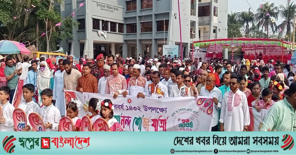বাংলা নববর্ষের পহেলা বৈশাখে প্রথম প্রহরে, যখন দেশজুড়ে চলছে আনন্দ-উৎসব আর মঙ্গল শোভাযাত্রার রঙে রাঙা সকাল, ঠিক তখনই বাংলা নববর্ষ ১৪৩২ উদযাপন উপলক্ষে বাগেরহাটে অনুষ্ঠিত হয়েছে বর্ণাঢ্য শোভাযাত্রা। সোমবার (১৪ এপ্রিল) সকালে জেলা প্রশাসনের আয়োজনে শহরের স্টেডিয়াম থেকে বের হওয়া এই শোভাযাত্রাটি প্রধান প্রধান সড়ক প্রদক্ষিণ করে জেলা পরিষদ অডিটোরিয়াম প্রাঙ্গণে গিয়ে শেষ হয়।