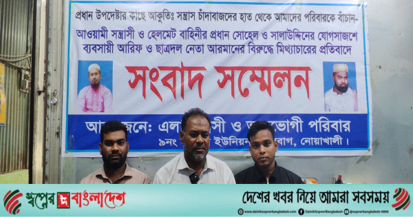 বৃহস্পতিবার (১৭ এপ্রিল) সকালে ভুক্তভোগী পরিবার জেলা শহর মাইজদীর ইউরো শপিং কমপ্লেক্সে আয়োজিত সংবাদ সম্মেলনে ভুক্তভোগী ব্যবসায়ী ও বিএনপি নেতা শেখ আহমদ এমন অভিযোগ করেন।