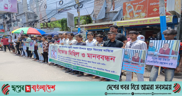 মানববন্ধন শেষে বক্তারা বলেন, “সাংবাদিকদের কাছে আমাদের অনুরোধ—আপনারা কলম ও ক্যামেরার শক্তির মাধ্যমে এ ধরনের মুখোশধারী ভুয়া সাংবাদিকদের মুখোশ সমাজের সামনে উন্মোচন করুন।”