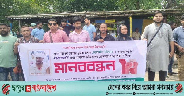 মানববন্ধনে বক্তারা চট্টগ্রামে সাংবাদিকদের ওপর বর্বরোচিত হামলার তীব্র নিন্দা জানান এবং হামলাকারী চিহ্নিত সন্ত্রাসীদের অনতিবিলম্বে গ্রেপ্তারের দাবি জানান।