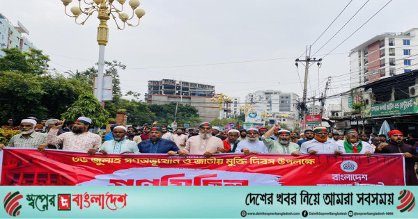 বাংলাদেশ জামায়াতে ইসলামীর কেন্দ্রীয় কর্মসূচীর অংশ হিসেবে রাজশাহী মহানগরীর উদ্যেগে ৩৬ জুলাই গণঅভ্যুত্থান ও জাতীয় মুক্তির ১ম বার্ষিকী উপলক্ষে গণমিছিল ও সমাবেশ অনুষ্ঠিত হয়েছে। মঙ্গলবার বিকেল ৫ টায় রাজশাহী নগরীর আলুপট্রি মোড় হতে গণমিছিল শুরু হয়ে নগরীর বিভিন্ন রাস্তা প্রদক্ষিন শেষে নগরীর গণকপাড়া মোড়ে এসে সমাবেশ অনুষ্ঠিত হয়। সমাবেশে প্রধান অতিথি হিসেবে বক্তব্য রাখেন, বাংলাদেশ জামায়াতে ইসলামীর কেন্দ্রীয় কর্মপরিদ সদস্য ও রাজশাহী মহানগরীর আমীর ড. মাওলানা কেরামত আলী।