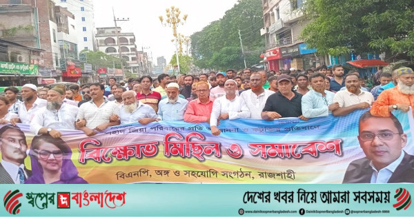 রবিবার বিকেল ৫টায় নগরীর বাটার মোড়ে বিক্ষোভ সমাবেশ অনুষ্ঠিত হয়। এতে সভাপতিত্ব করেন রাজপাড়া থানা বিএনপির সভাপতি সৈকত হাজী এবং প্রধান বক্তা ছিলেন মতিহার থানা বিএনপির সভাপতি আনসার হোসেন।