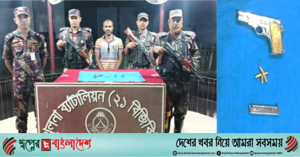 বিজিবি জানান,পুটখালী বিওপির একটি টহলদল সীমান্ত মেইন পিলার ১৭/০৭ এস এর ১৬২ আর পিলার হতে ৩০০ গজ বাংলাদেশের অভ্যন্তরে পুটখালী উত্তর পাড়া নামক স্থান ১টি ইতালি তৈরি পিস্তল,২টি ম্যাগাজিন ও ৫ রাউন্ড গুলি সহ আটক মোঃ আক্তারুল ইসলাম (৪০), আতিয়ার রহমান বাবুর ছেলে, পুটখালী উত্তর পাড়া,গ্রামের বালুন্ডা, বেনাপোল পোর্ট, থানা, যশোরকে আটক করেন।