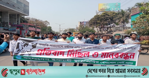 মঙ্গলবার (১১ মার্চ) সকাল ১১টা বেনাপোল বাজারে এই মানববন্ধন কর্মসূচি পালন করা হয়।