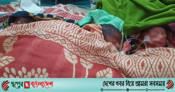 নাটোরের লালপুর উপজেলার সাঁইপাড়া এলাকার রেশমা বেগম (২২) এক সঙ্গে ৫ সন্তানের জন্ম দিয়েছেন। এর মধ্যে তিনজন ছেলে ও দুজন মেয়ে। তবে জন্মের কয়েক ঘণ্টার ব্যবধানে এক ছেলে ও এক মেয়ে মারা যায়। বর্তমানে ২ ছেলে ও ১ মেয়ে সুস্থ্য আছে। মঙ্গলবার (৩০ সেপ্টেম্বর) রাতে রাজশাহী মেডিকেল কলেজ হাসপাতালে এ শিশুদের জন্ম হয়। শিশুর বাবা আসিব হোসেন সবুজ বিষয়টি নিশ্চিত করে জানান, মঙ্গলবার রাত ৯টার দিকে রাজশাহী মেডিকেল কলেজ হাসপাতালে একসঙ্গে আমার পাঁচ সন্তান জন্মগ্রহণ করে। জন্মের কিছুক্ষণ পর নবজাতকদের শারীরিক অবস্থা অবনতি হলে আইসিইউতে নেওয়া হয়। রাত ১১টার দিকে এক ছেলে ও এক মেয়ে মারা যায়। বর্তমানে বাকি তিন সন্তান মোটামুটি সুস্থ আছে। সবুজ ও রেশমা দম্পতির স্বজন সুমাইয়া, বেচে থাকা তিন শিশুর সুস্থ্যতার জন্য সবার কাছে দোয়া কামনা করেন।