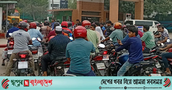 তেল নিতে আসা মোটরসাইকেল আরোহী আবু পলাশ বলেন, ইফতারের আগে অনেকক্ষণ ধরে লাইনে দাঁড়িয়ে আছি। আমরা পেশাজীবী মানুষ, মোটরসাইকেলই আমাদের প্রধান বাহন। তাই বাধ্য হয়েই তেলের জন্য অপেক্ষা করতে হচ্ছে।