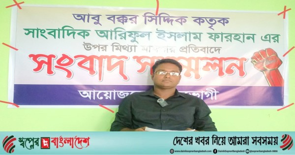 পাওনা টাকা ফেরত চাওয়ায় সাংবাদিক আরিফের বিরুদ্ধে চুরির অপবাদ দিয়ে মিথ্যা মামলা দায়ের করার অভিযোগ উঠেছে। আজ (বৃহস্পতিবার) এক সংবাদ সম্মেলনে ভুক্তভোগী সাংবাদিক মো. আরিফুল ইসলাম ফারহান এই অভিযোগ করেন। তিনি দাবি করেন, পাওনা ২ লক্ষ টাকা আত্মসাৎ করতেই উদ্দেশ্যপ্রণোদিতভাবে তার বিরুদ্ধে এই বানোয়াট মামলা সাজানো হয়েছে।